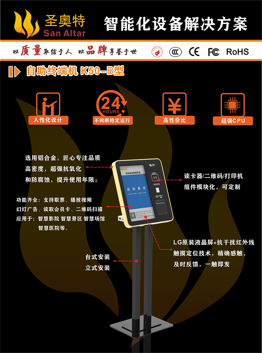 K50-21B自助終端機 應用于:智慧影院 智慧景區(qū) 智慧場館 智慧醫(yī)院等