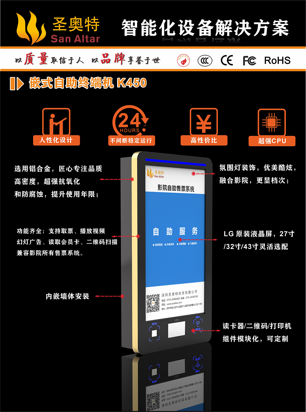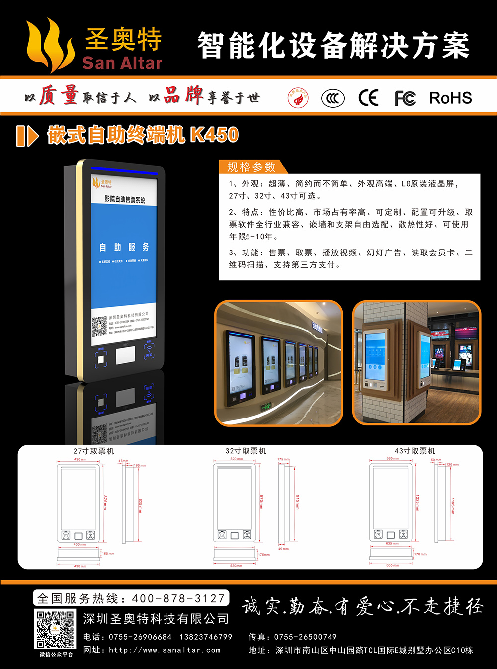 K450系列自助終端機(jī) 廣泛應(yīng)用于:智慧影院 智慧景區(qū) 智慧場館 智慧醫(yī)院等