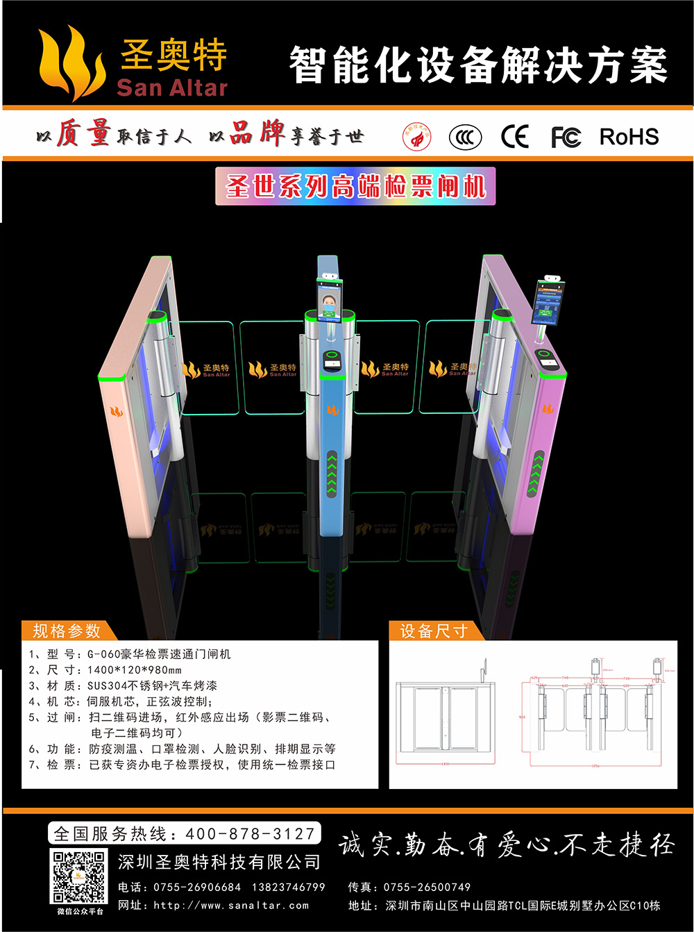 1、型 號(hào):G-060豪華檢票速通門(mén)閘機(jī)