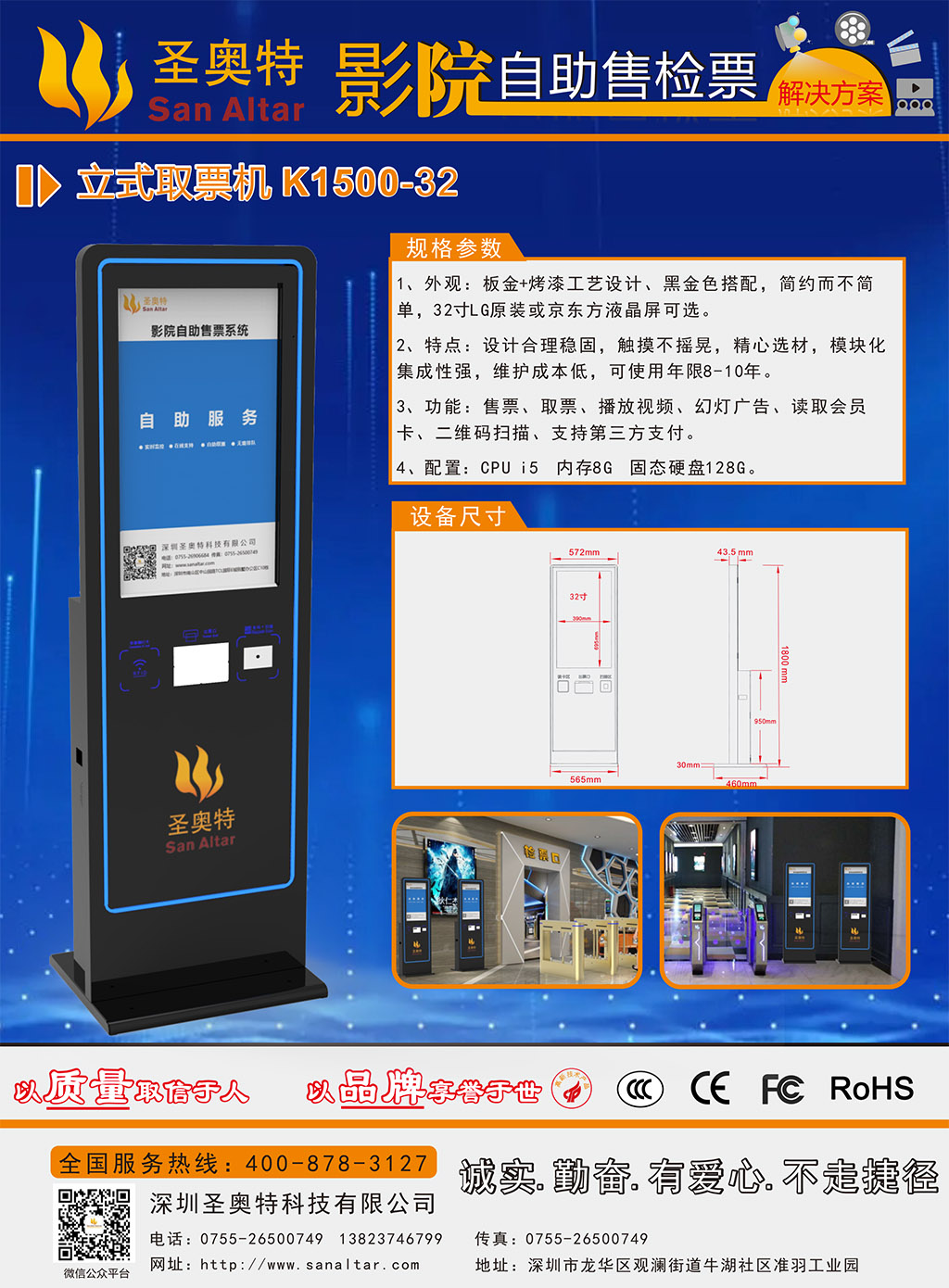 圣奧特K1500-32 立式自助終端機(jī) 廣泛應(yīng)用于:智慧影院 智慧景區(qū) 智慧場館 智慧醫(yī)院等