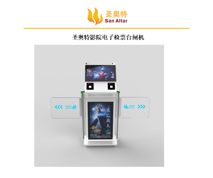 測溫廣告發(fā)布檢票臺是專門針對影院場景應(yīng),用而研發(fā)的一款簡易高效的智能化終端設(shè)備,可放在影院檢票口或者影廳門口,可針對使用場景選配高端擺閘,提高運營效率、減少運營人力。該產(chǎn)品可實現(xiàn)安全穩(wěn)定的無接觸測溫、智能檢票、廣告發(fā)布、同時配合圣奧特云檢票平臺,提供數(shù)據(jù)記錄分析統(tǒng)計等功能,為客戶提供全天候的實時檢票、預(yù)警及集中管控服務(wù)。